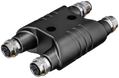- H-COUPLER M12 POWER MALE L-COD. / 3X FEMALE L-COD. 5-POL.