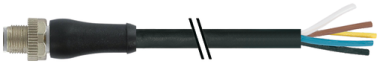 - M12 POWER MALE 0° L-COD. WITH CABLE PUR 5X1.5 BK 10M